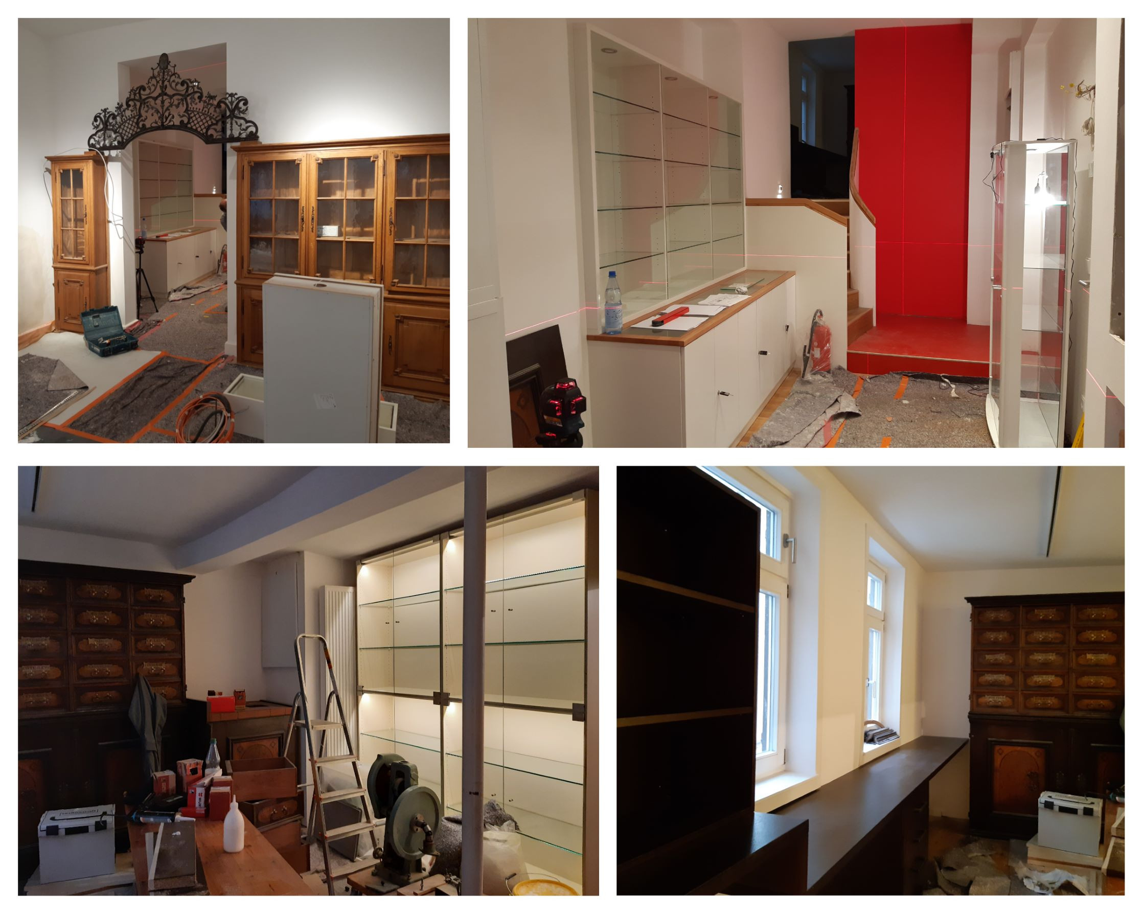 Dabei werden die verschiedenen Regale und Vitrinen aufgebaut sowie die Technik installiert. Anschließend kommt noch die neue Theke in den Verkaufsraum, bevor dann die Exponate aufgestellt und mit Erklärungen ausgezeichnet werden. Bis zur Eröffnung des Museums im Frühjahr 2021 ist dann alles fertig.