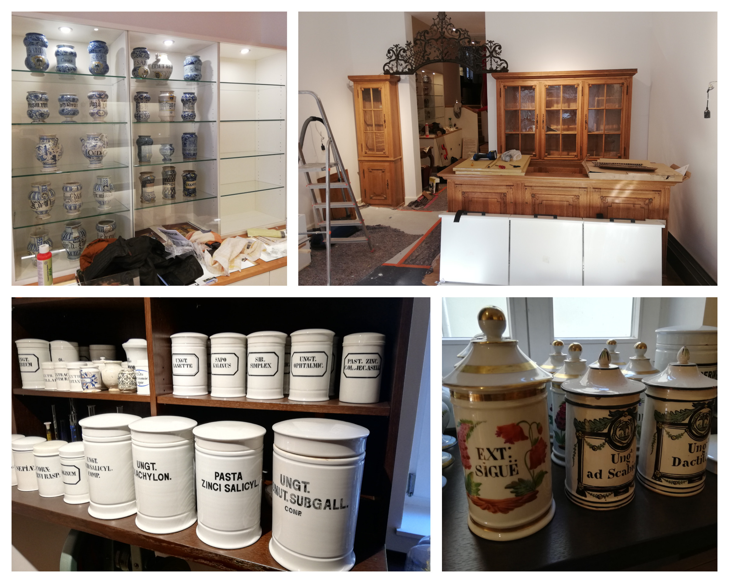 Zudem werden weitere Regale und Glasvitrinen aufgebaut und diverse Exponate werden sorgsam ausgepackt und aufgestellt. Beim Säubern und Platzieren der antiken Gefäße ist viel Fingerspitzengefühl gefordert, damit nichts zu Bruch geht.