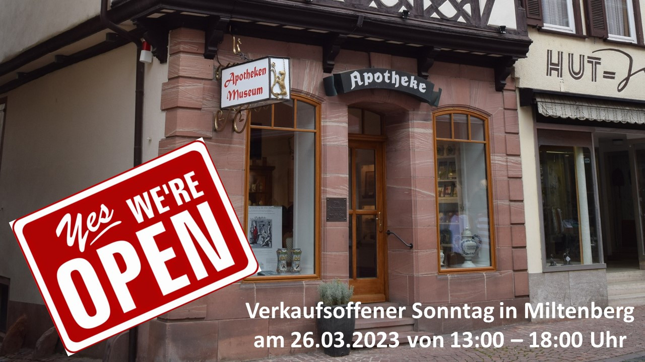 Anlässlich des diesjährigen Ostermarktes mit verkaufsoffenem Sonntag in der Fußgängerzone Miltenberg am 26.03.2023 hat das Apothekenmuseum Miltenberg von 13:00 - 18:00 Uhr geöffnet!